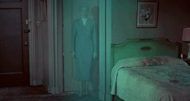 Here, Celia (Joan Bennett) marries Mark Lamphere (Michael Redgrave), who expounds his pet theory of “felicitous” structures on their honeymoon. Celia thinks that “felicitous” means happy, and is shocked to discover that every room in her husband’s collection is the site of a murder—and all the victims were women. There is a brocaded Renaissance chamber where a man strangled his lovers with a glittering scarf, and a grimy brick basement where a son tied his mother to a wooden chair and let her drown in a flood. Mark argues that “emanations” from the rooms themselves forced the men to kill.