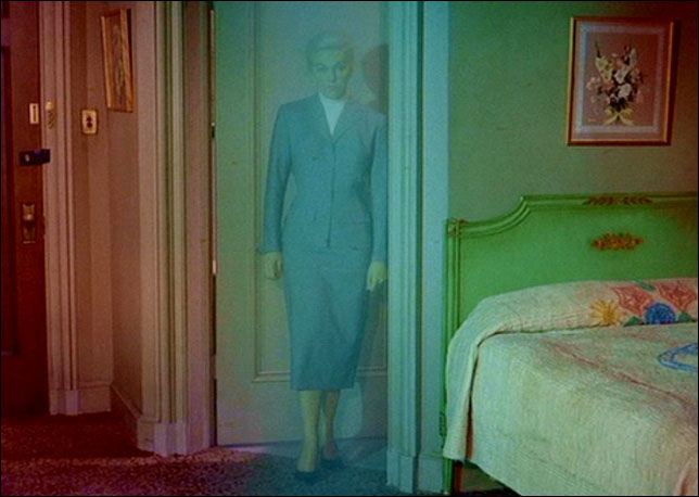 Another man is convicted of her killing, and Marty teams up with the man’s wife to prove his innocence. They hunt for the brooch, but it’s not until Marty falls off the wagon that he stumbles across it in a bar, pinned to the dress of a women who tells him that he gave it to her. Lashed to a bed in the grim cage of an alcoholic ward, Marty flashes back to the murder, which liquor-induced amnesia had erased from his mind. Mavis’s apartment is now a dark, wavering, wobbling dreamscape, its previously unconscious surrealism unleashed. There is a fine wrinkle of irony in this twist ending: the man who can’t forget his wife also can’t remember killing her. Amnesia and obsessive memory are so far apart they’re close together, the one a desperate reaction to the other. If melodrama’s lavishly decorated rooms are places where Something Happened, drably impersonal hotel rooms are places where anything might have happened. Like criminals who can’t remember what they’ve done, they’re haunted not by the past but by the future, not by memories but by terrible suspicions.
